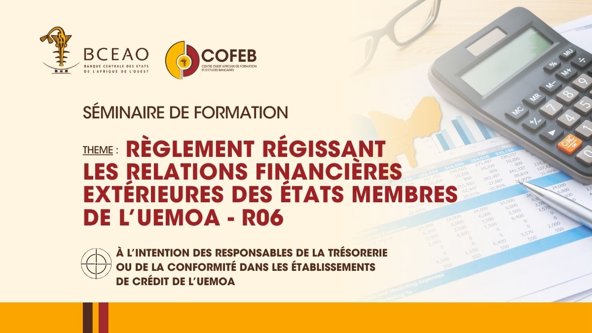 Le Centre Ouest Africain de Formation et d’Etudes Bancaires (COFEB) a organisé, les 3 et 4 février 2026, un séminaire sur le thème « Règlement régissant les relations financières extérieures des Etats membres de l’UEMOA - R06 », à l’intention des agents des établissements de crédit de l’Union. Cette initiative s’inscrit dans le cadre du Programme de formation et de vulgarisation du nouveau Règlement R06.